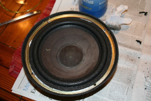 En hier de tweede woofer uit de kast. Denk erom: reviseer nooit alleen de 'onderste' of 'bovenste' woofer - reviseer ALLES! Beide woofers zijn bij de 601 van hetzelfde type.